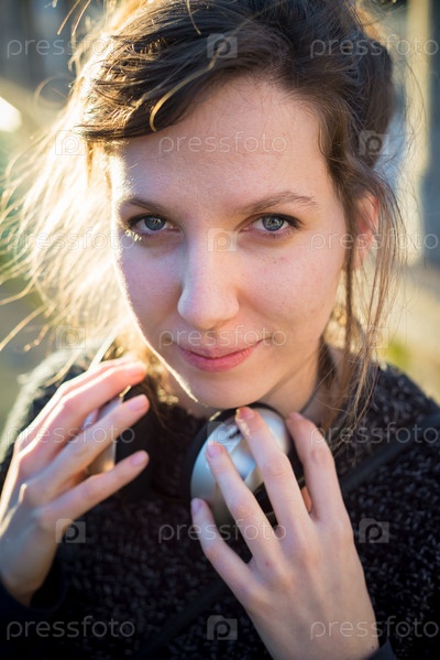Молодая женщина в наушниках