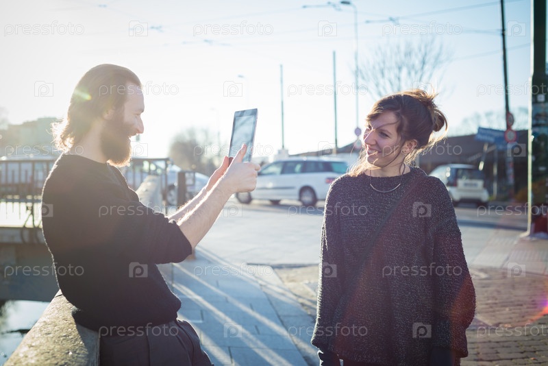Молодая пара на улице в городе