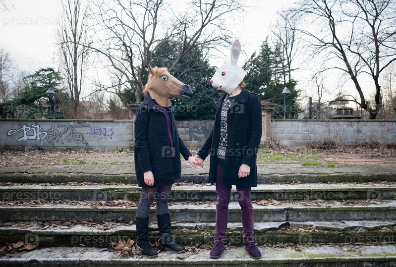 Пара хипстеров в звериных масках