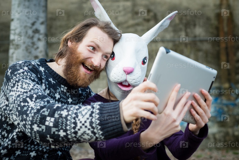 Пара хипстеров в звериных масках