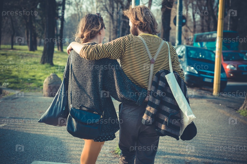 Молодая современная пара в городе