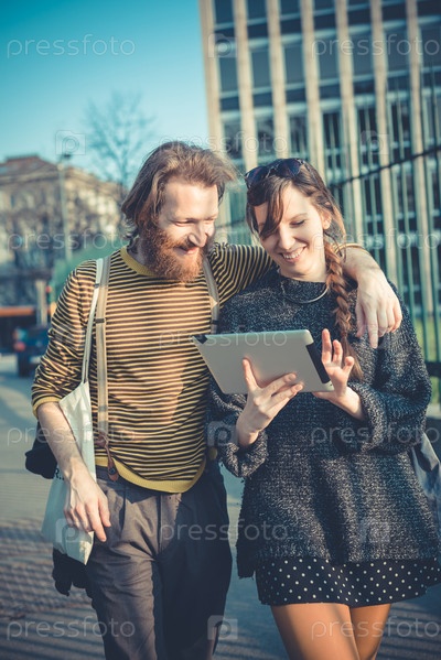Молодая современная пара в городе