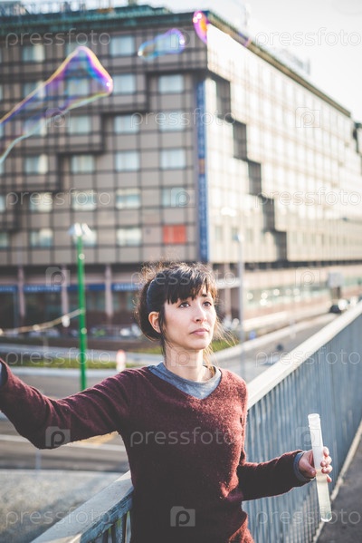 Молодая женщина-хипстер на улице