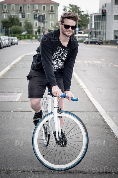 Стильный мужчина на велосипеде