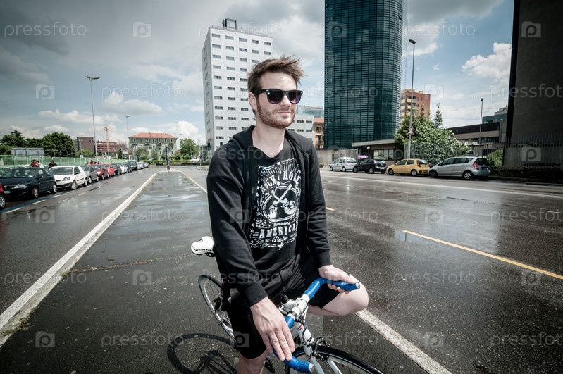 Стильный мужчина на велосипеде