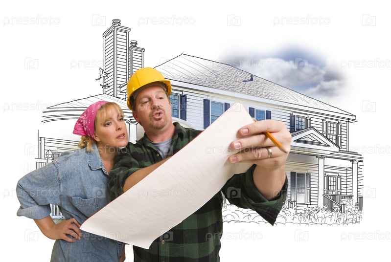 Подрядчик обсуждает чертеж