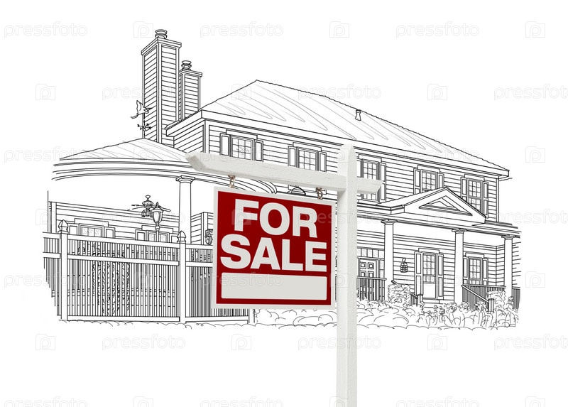 Чертеж дома и вывеска о продаже