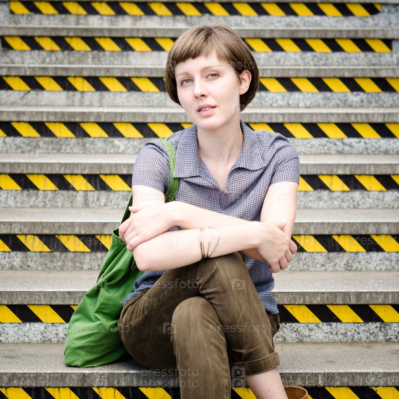 Женщина сидит на лестнице