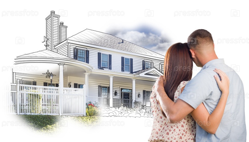 Пара на фоне нарисованного дома