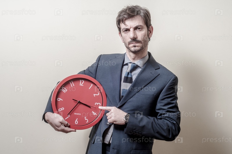 Бизнесмен с сомнением смотрит на часы