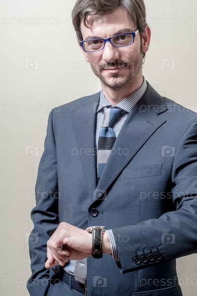 Бизнесмен смотрит на наручные часы