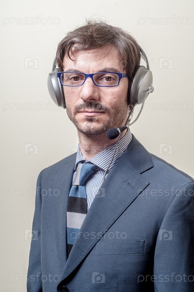 Бизнесмен в наушниках с микрофоном