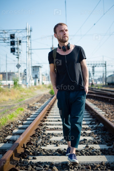 Хипстер идет по рельсам
