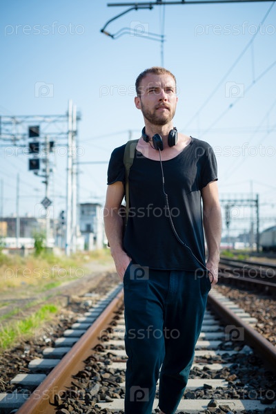 Хипстер идет по рельсам