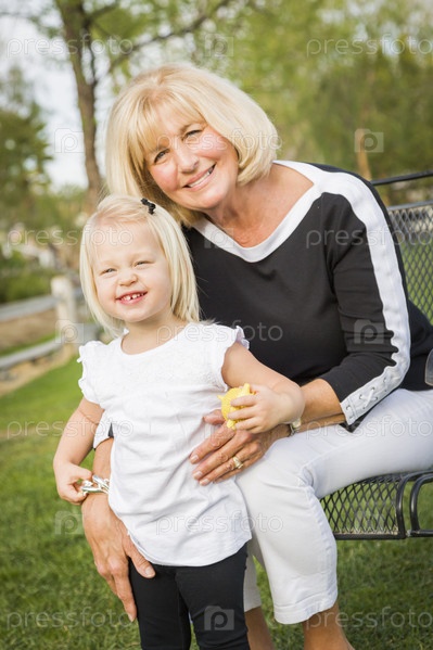 Женщина играет с внучкой в парке