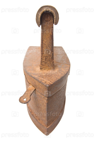 Старинный ржавый утюг, изолированный на белом фоне