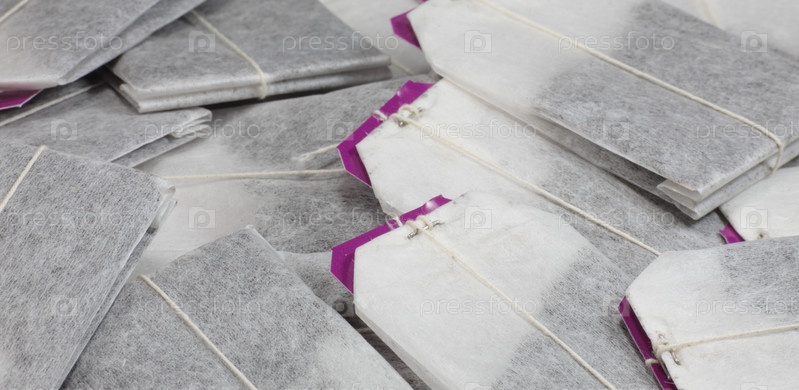 Пакеты черного чая с красными тегами
