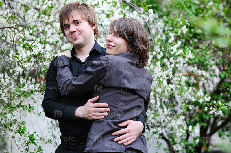 Молодая влюбленная пара в весеннем парке