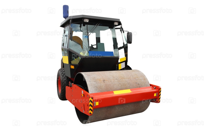 Дорожный каток на белом фоне