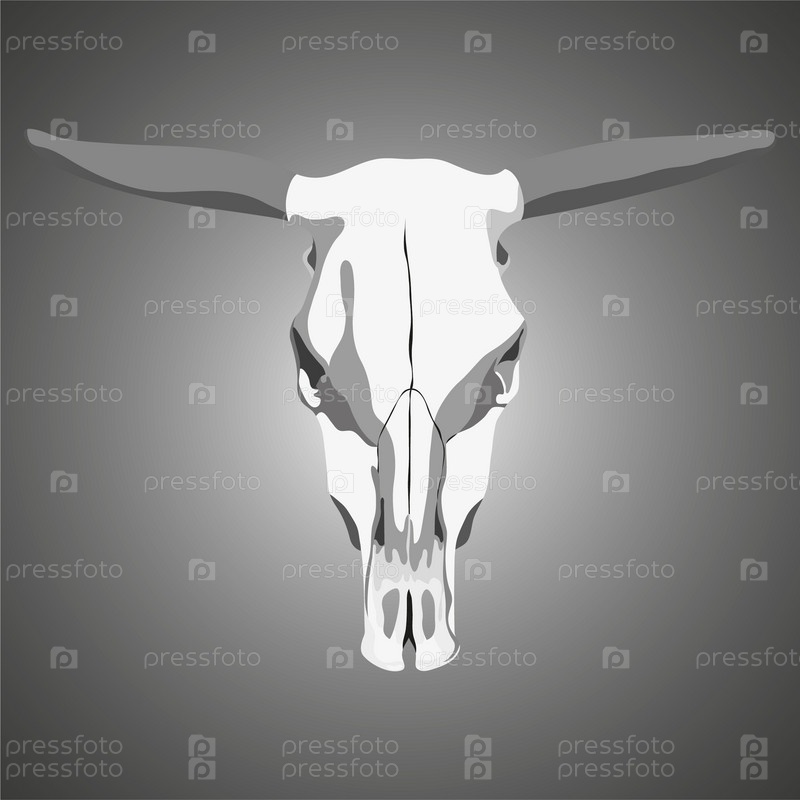 Череп коровы на сером фоне, векторная иллюстрация