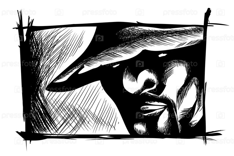 Темное лицо мужчины в шляпе в рамке