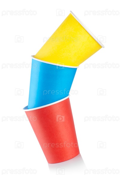 Цветные одноразовые стаканчики на белом фоне