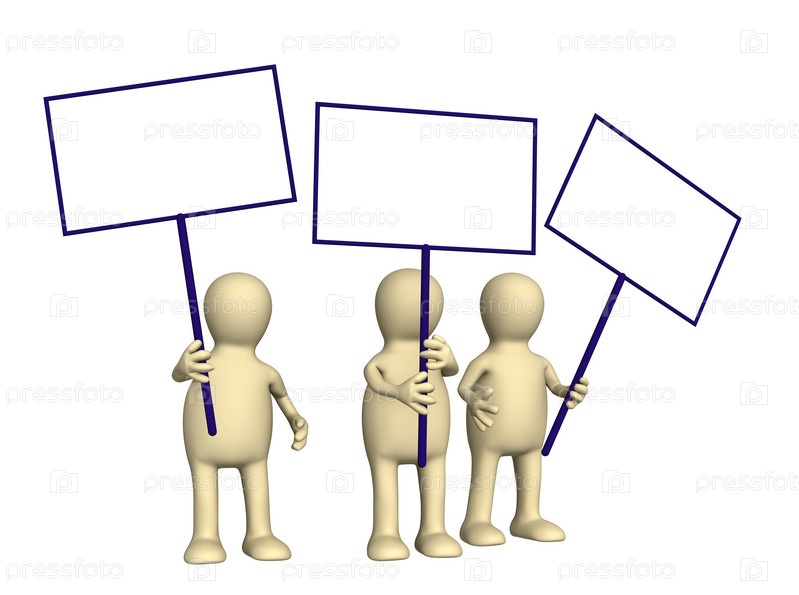 Три маленьких человека с плакатами в руках