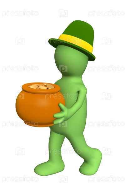 Человек-лепрекон, несущий горшок с золотыми монетами