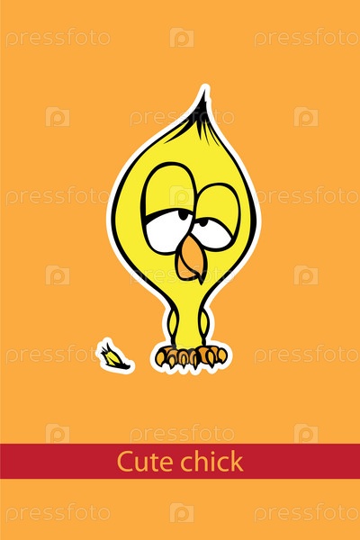 Желтый цыпленок на оранжевом фоне, векторная иллюстрация