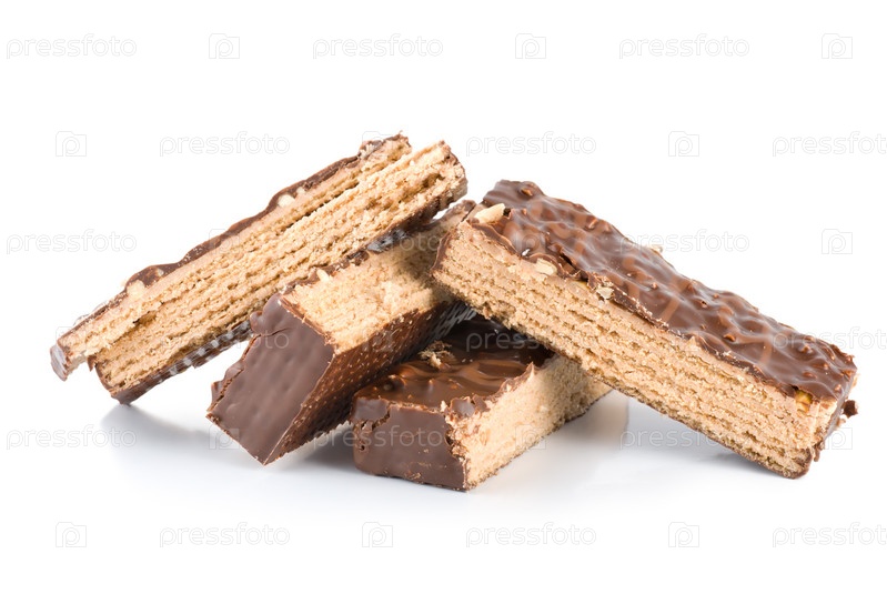 Шоколадные вафли на белом фоне
