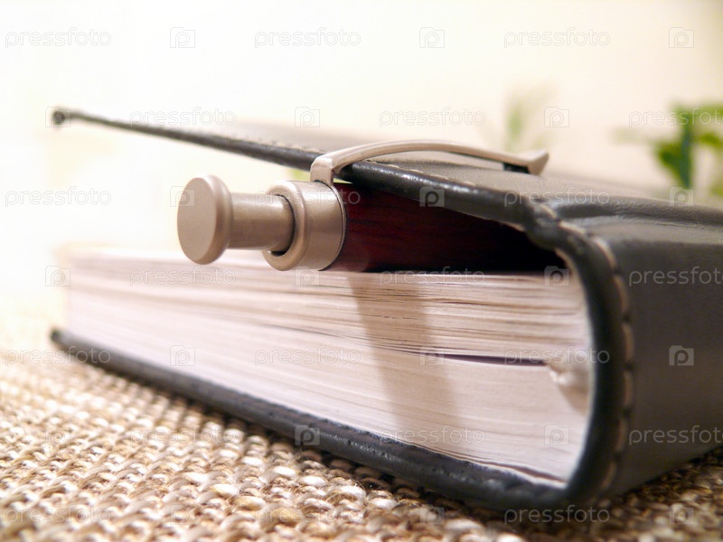 Ручка в толстом ежедневнике крупным планом