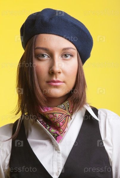 Девушка-художник на желтом фоне