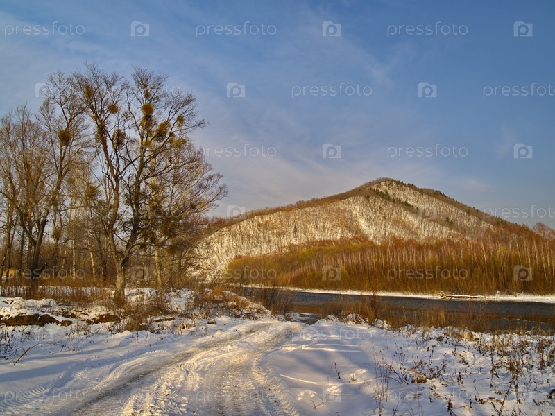 Зимний вечер на берегу таежной речки