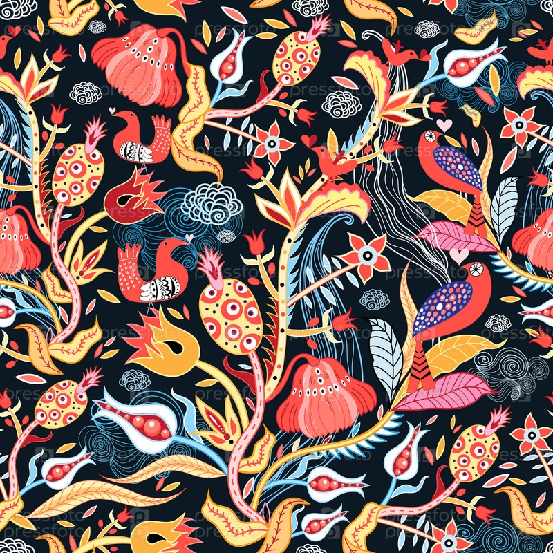 Яркий цветочный узор с птицами