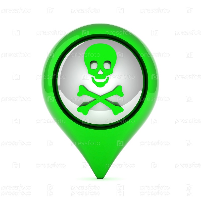 Зеленая, глянцевая иконка с изображением черепа и костей на белом фоне