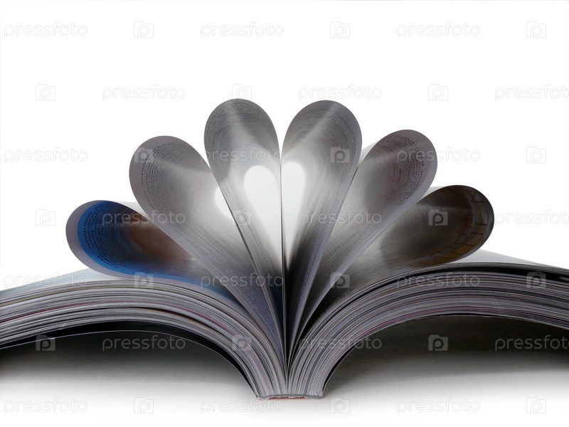 Открытый журнал с завернутыми страницами. Крупный план