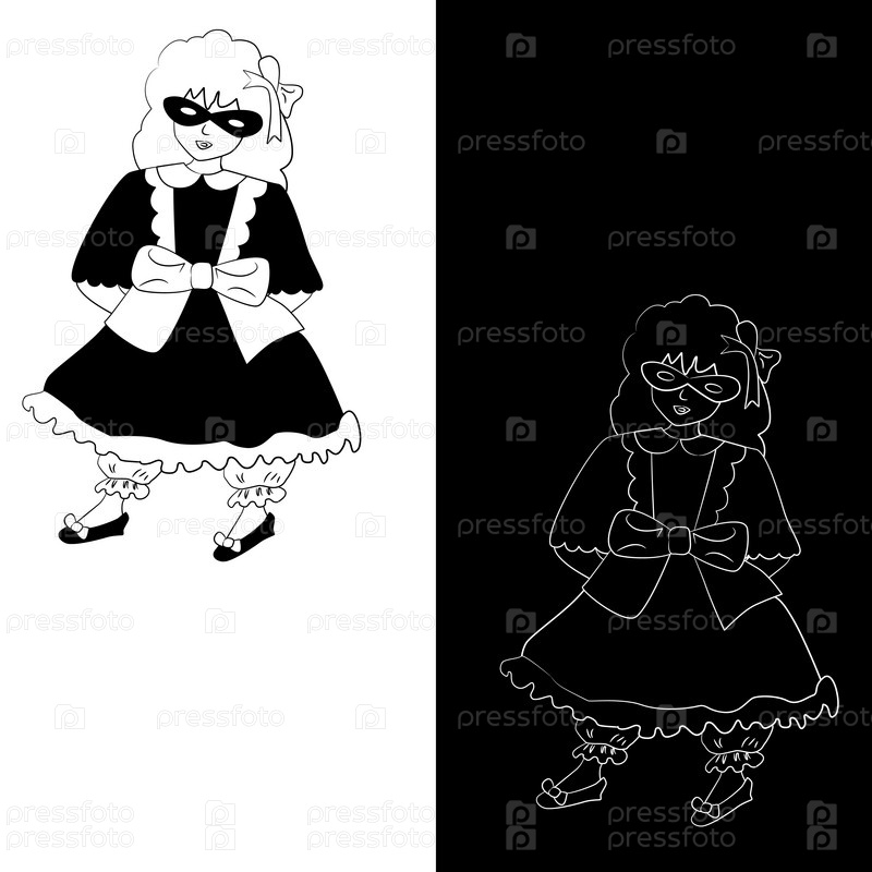 Маленькая девочка в маске, винтажный стиль, два варианта