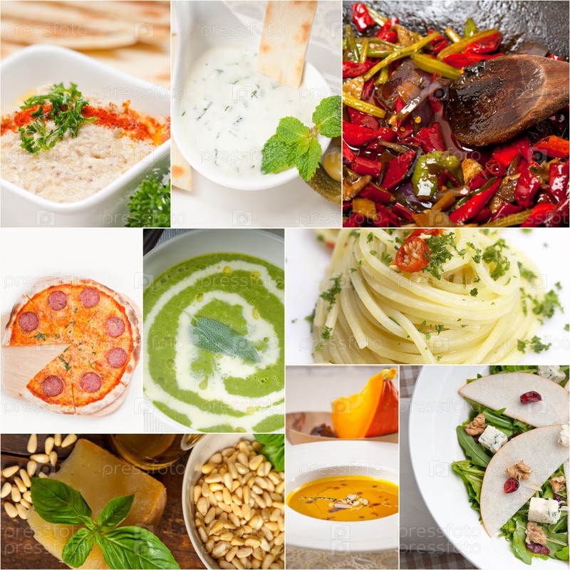 Коллаж из полезной и вкусной итальянской еды