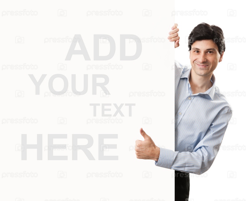 Довольный бизнесмен с баннером