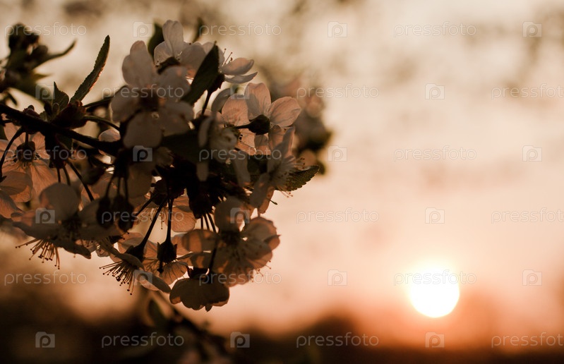 Цветущая ветка, весна, закат