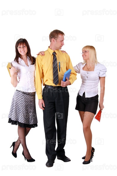 Две женщины и мужчина на белом фоне