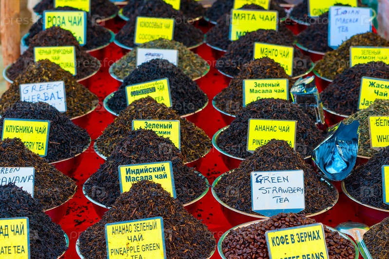 Черный и зеленый чай на восточном базаре