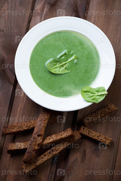 Суп из шпината с гренками