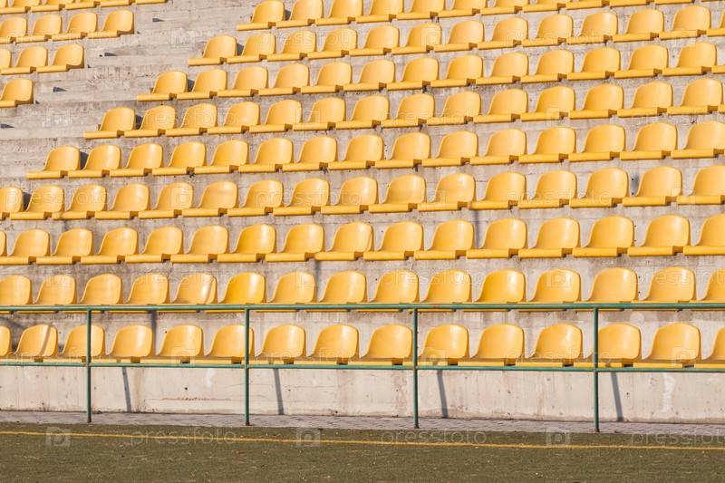 Желтые стулья на футбольном поле