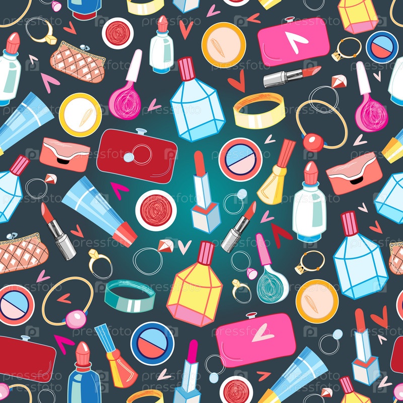 Красивый узор из колец и косметики