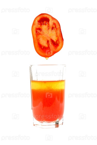 Томатный сок выдавливается в стакан
