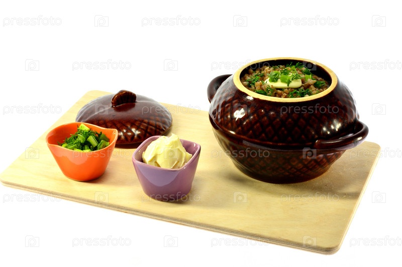 Гречневая каша, масло, зеленый лук