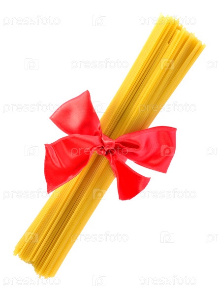 Пачка макарон. связанных красной лентой