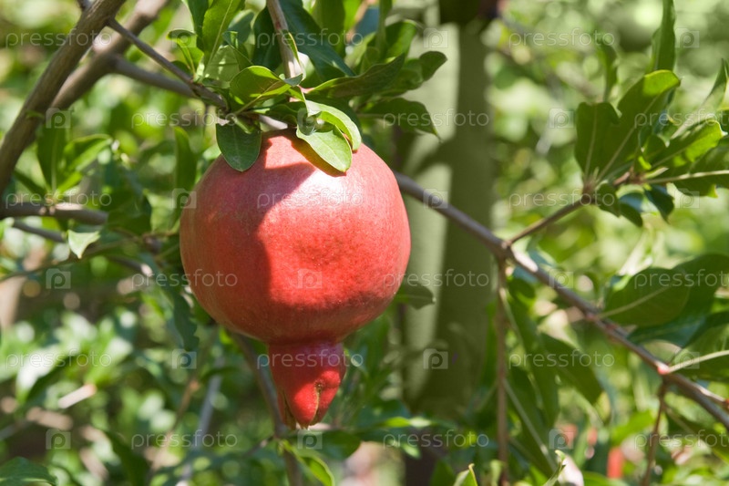 Спелый красный гранат на дереве