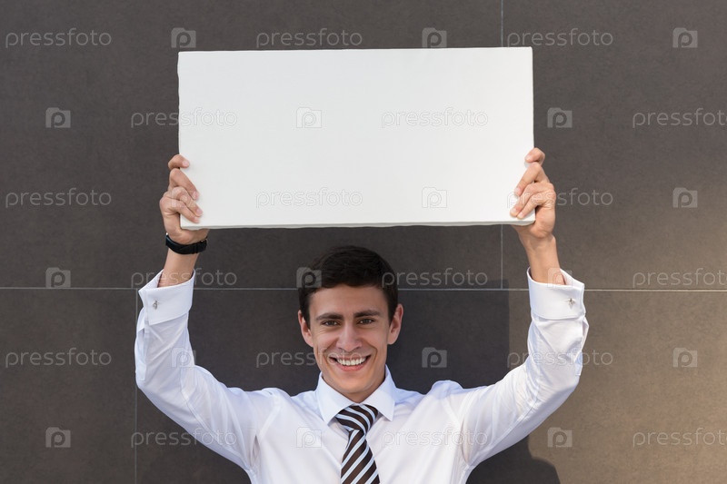 Бизнесмен показывает чистый баннер